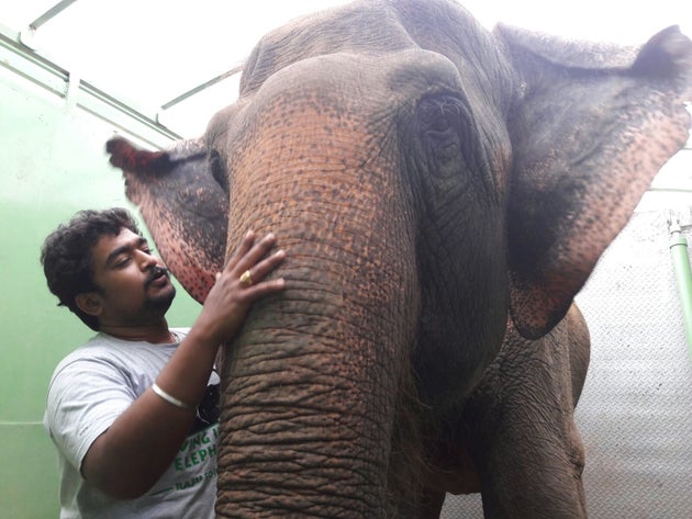 この2頭のゾウは、傾斜した屋根、乗降時に使う電動の足場、大きなサイズのシャワー、そして獣医チームのための十分なスペースを備えた、インドで初めての「ゾウ用救急車」に乗り、ゾウ保護センターに11月27日に到着した。